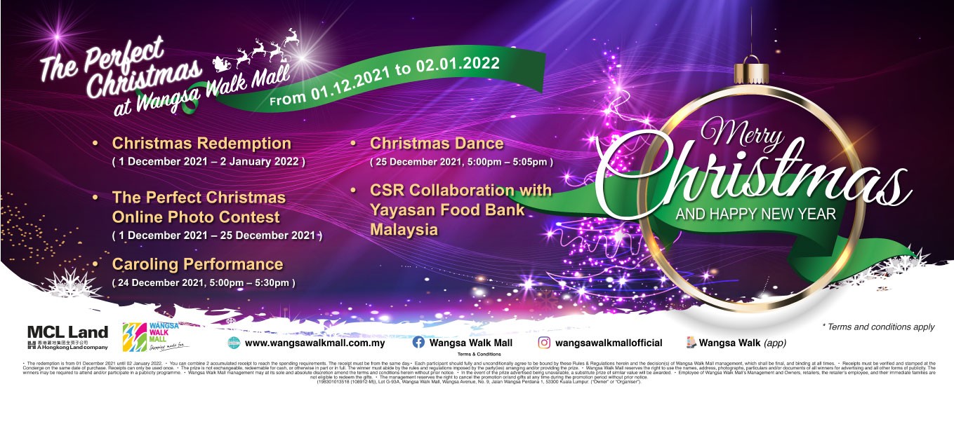 Wishing you the PERFECT CHRISTMAS 🎅 Dont forget to visit Wangsa Walk Mall for your Perfect Christmas Shopping Experience ! Join in with our: 🎄 Christmas Redemption 1/12/2021 - 2/1/2022 Concierge - Level 1 10am-5pm Weekday 11am-7pm Weekend & PH 🎄Online Photo Contest 1/12/2021 - 25/12/2021 🎄Caroling Performance 24/12/2021 🎄Christmas Dance 25/12/2021